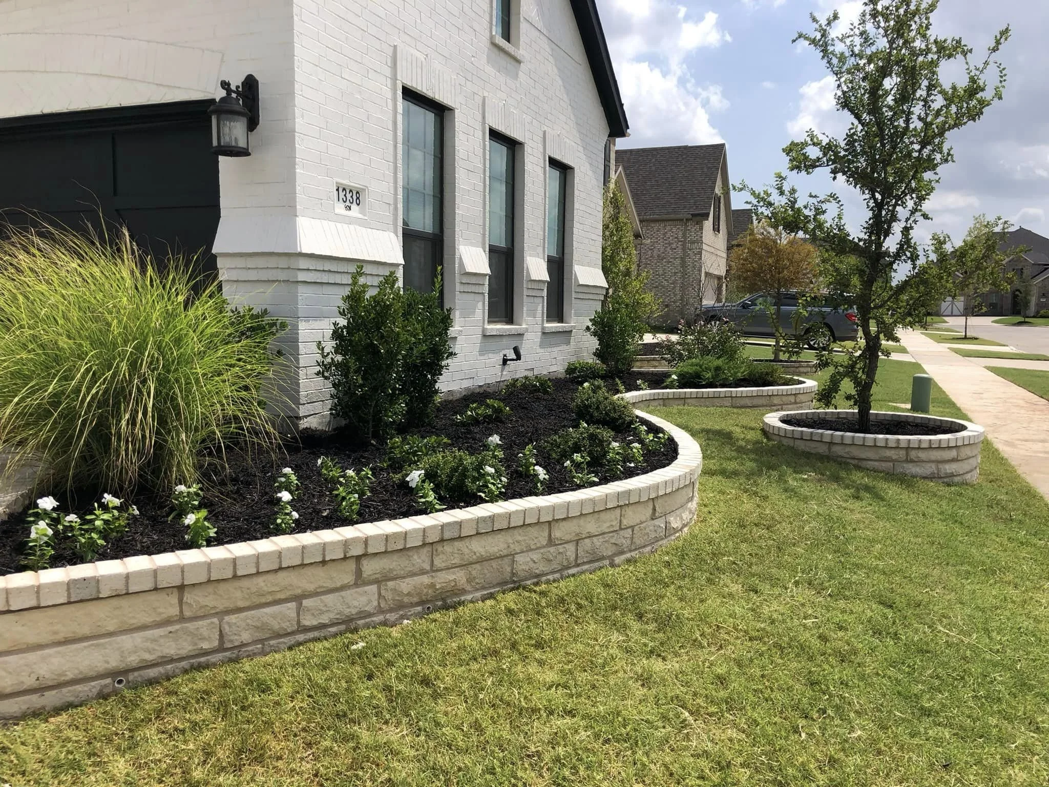 Landscaped areas designed to hold plants, flowers, or shrubs, often bordered by brick, stone, or concrete for structure and aesthetics. They enhance curb appeal, prevent soil erosion, and create defined green spaces in residential and commercial properties.